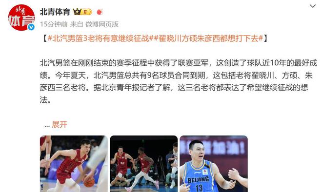 “北汽男籃在剛剛結(jié)束的賽季征程中獲得了聯(lián)賽亞軍,這創(chuàng)造了球隊(duì)近10年的最好成績(jī)。今年夏天,北汽男籃總共有9名球員合同到期,這包括老將翟曉川、方碩、朱彥西三名老將。據(jù)北京青年報(bào)記者了解,這三名老將都表達(dá)了希望繼續(xù)征戰(zhàn)的想法。