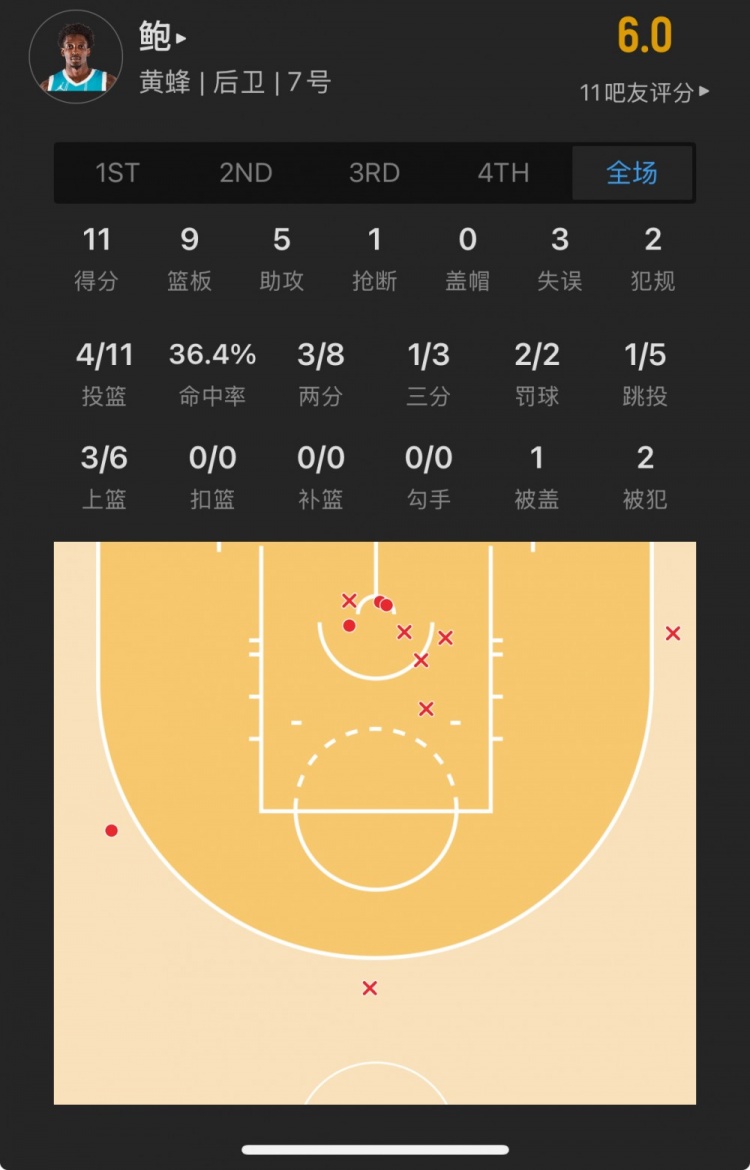 黃蜂落選秀 達(dá)米恩-鮑 登場(chǎng)33.1分鐘